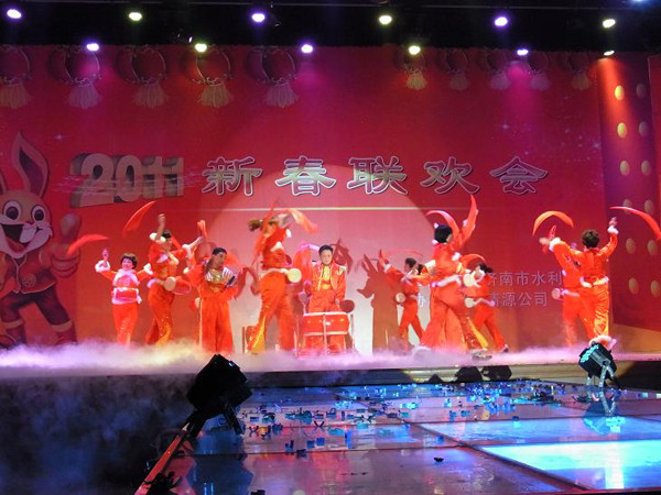 今天下午,市水利局廣大干部職工歡聚一堂,隆重舉行2011年春節(jié)聯(lián)歡會。圖為我院職工表演自編自導(dǎo)的歌舞劇。