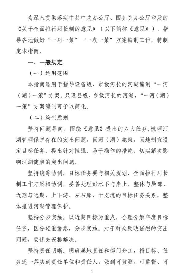 水利部辦公廳關(guān)于印發(fā)《"一河(湖)一策”方案編制指南(試行)》的通知