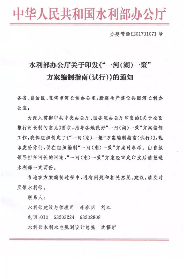 【概要描述】水利部辦公廳關(guān)于印發(fā)《"一河(湖)一策”方案編制指南(試行)》的通知